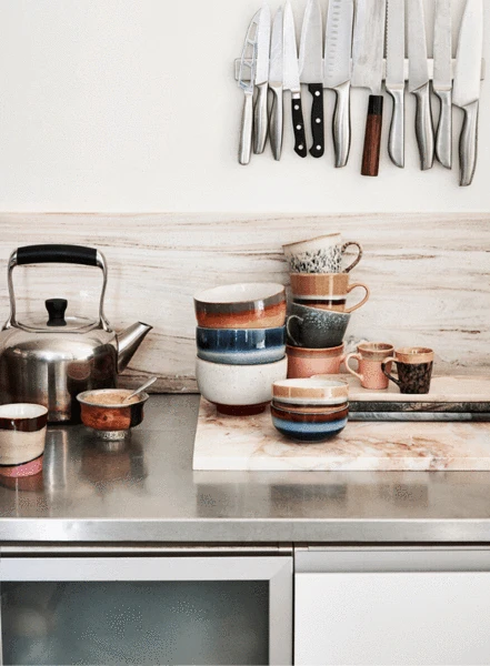 Dutch brand HKliving draw influences from all four corners of the globe to create their eclectic range of home accessories for modern homes. In contrast to Scandinavian brands who prefer a minimalist, ‘less is more’ aesthetic, HKliving’s style nods to diverse cultures as well as looking to the past, especially the 1970s era, to create their irreverent range of home accessories. Think Darwin-esque paperweights containing suspended jellyfish, cushions printed with Japanese style patterns, and ceramic plates, cups and platters inspired by a bohemian aesthetic.