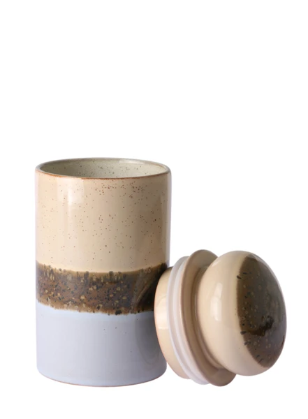 Ceramic 70s storage jar in Lake. Whether you are a first time lover of our 70s ceramics, or a long term collector, there is always room for more. Also available in colours reef, hail and tropical. colour: Lake washing instructions : With silicone ring dimensions: 11x11x22,5cm product length/depth (cm): 11 product width (cm): 11 product height (cm): 22,5 product diameter (cm): 11 product weight (gr): 1120 material: Stoneware characteristic: Reactive glaze food safe: Yes dishwasher proof: Yes product capacity (ML): 1000