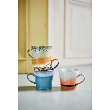 Each Piece is hand finished with reactive glaze and therefore each piece is beautifully tactile and completely individual. This Cappuccino Mug looks great solo, in a set or amongst the other playful designs.