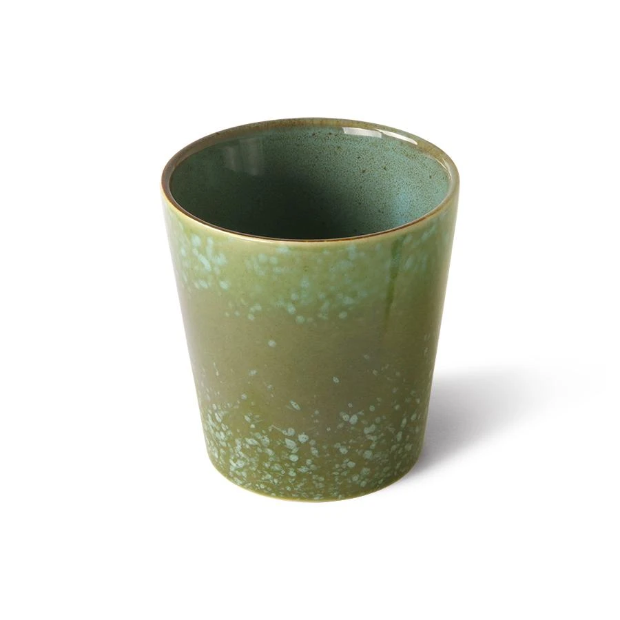 The Grass Coffee Mug from our popular 70’s ceramics series features a calming combination of green tones and a sophisticated mix of matte and shiny glazes.