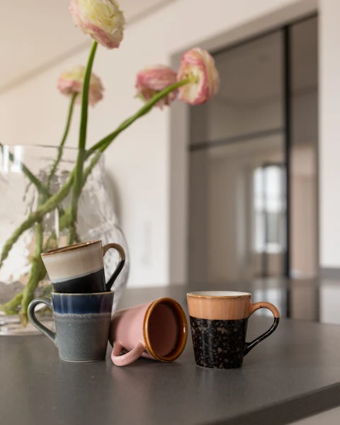 Das 4er Set Espressotassen 70’s von HKliving kommt in einer lässigen schwarzen Geschenkbox daher und ist somit prädestiniert anderen oder sich selbst eine Freude zu machen. Die wunderschönen kleinen Tassen mit Henkel sind aufgrund ihrer handgefertigten Verarbeitung alle für sich einzigartig. Ganz gleich, ob du schon Sammler der 70-er Jahre Keramik bist oder ein neuer Liebhaber der trendigen Geschirrserie – es gibt immer Platz für mehr. Und auch in diesem 4er Set gibt es wieder schöne neue Farben und Oberflächen, die es mit ihren Designs in die neue Kollektion des niederländischen Labels geschafft haben. Und obwohl alle vier Modelle anders aussehen, harmonieren sie ganz wunderbar miteinander und bringen Stil und Farbe auf deinen Frühstückstisch. handgefertigt kombinierbar frisches Update Keramik spülmaschinenfest size & fit 8,5 x 8,6 x 2cm Füllmenge 200ml Material Steingut Artikelnummer ACE6867