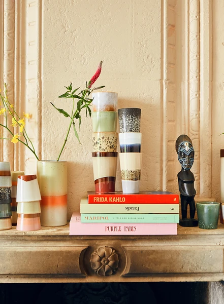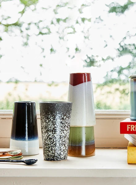 70s ceramics: latte mug in Arctic. Just when you thought their 70s ceramics collection couldn’t get any better, HK decided to expand it with new handmade finishes and layers of colours to help keep your cabinetry as funky as ever. Material: Stoneware Dimensions: 7,5×7,5x13cm Dishwasher proof: Yes Microwave proof: Yes Food safe: Yes Product capacity: 280ml Characteristic: Reactive glaze Differences may appear: Yes Product weight: 275g