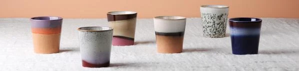 Mugs from the popular HKliving 70’s ceramics series. The mugs are all unique due to the handmade finish. Whether you are a first time lover of our 70’s ceramics, or a long term collector, there is always room for more. Again, more funky colours, new finishes and rusty designs found their way into our collection of mugs, bowls and plates. Mix and match your own color preferences to obtain your unique set of mugs, product weight (gr): 220 material: ceramic. product capacity (ML): 180.