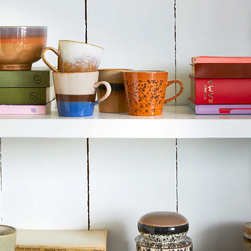 Whether you are a first time lover of our 70s ceramics, or a long term collector, there is always room for more. Again, more funky colours, new finishes and rusty designs found their way into our collection of mugs, bowls and plates.