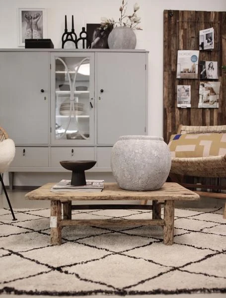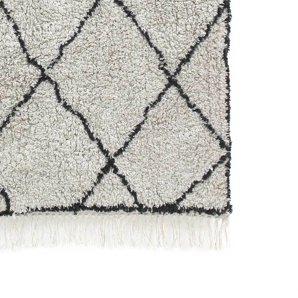 Beautiful rug from the HK Living brand. Cotton woven with a rhombus motif that imitates the work of Berber rugs. Its essence, color and design adapts to any type of environment and style, as part of a Nordic, classic or modern decoration.