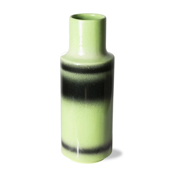 This vase is a mix of bright green and black has a bold aesthetic. Its column like form combined with its attention-grabbing colour combination makes it a statement piece to add to your home, we love mixing it with other pieces in a variety of green shades. There is also a version of this vase with a handle which is slightly shorter and these look great styled together too. Material – Stoneware Size – 11.5L x 11.5W x 30.5H cm Care – Wipe Clean. Due To The Nature Of This Vase Differences May Appear But These Unique Details Are To Be Celebrated.