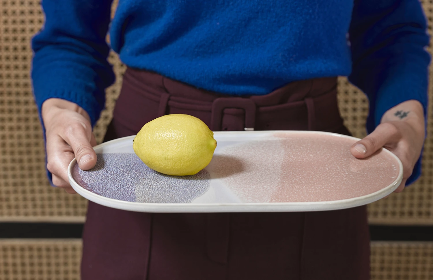 Oval dinner plate from the Gallery ceramics series. The plates are all unique due to the handmade finish.