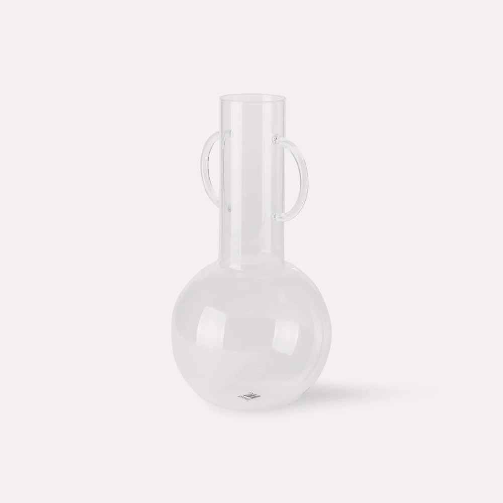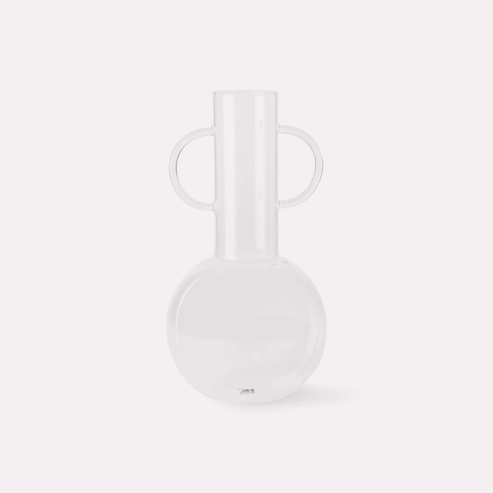 Transparent glass vase with a smooth and ultra-thin finish and original side handles on the neck as ears. A unique and delicate piece that will brighten up any room and give more life to your flower arrangements.