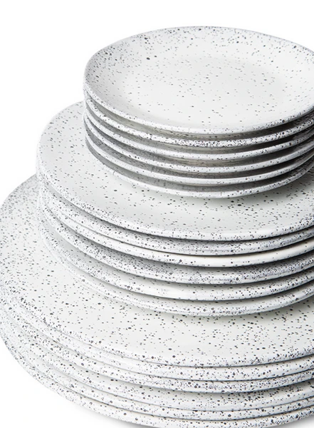 Gradient ceramics: dinner plate in cream. Earthy colours in organic shapes, HK like it when things are not perfectly right but do create a vibe. With their speckled surface, curvy shapes and roughed look, the gradient ceramics reflect that sight. This newest addition to our family of ceramics is available in dinner- and side plate sizes and possesses the perfect mix & match value. Material: Stoneware Dimensions: 29x29x1,7cm Food safe: Yes Microwave proof: Yes Dishwasher proof: Yes Product weight: 960g Characteristic: Amount of speckles could vary because of the reactive glaze Differences may appear: Yes