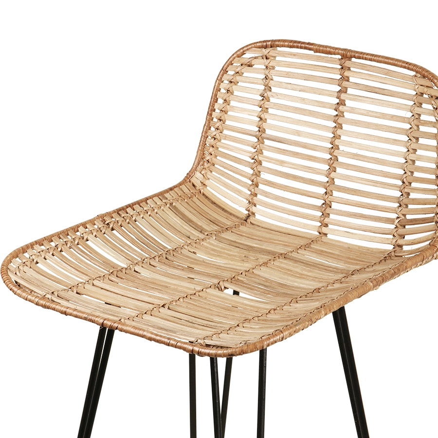 Intricately hand woven, this fabulous rattan bar stool creates the perfect balance between sophistication and natural materials. The rounded seat and low back sit you in the perfect position for breakfast at the breakfast bar or a few drinks of an evening. The metal legs create a solid frame which have been lacquered in black. Hand braided from rattan, this chair has a Bohemian feel whilst the Scandinavian roots give it a contemporary edge. Due to the materials natural properties, small cracks may appear in the rattan, this is normal and should be considered part of the character of the piece. It’s high quality, Dutch design heritage insures that it is well made from start to finish and ergonomically created to insure comfort. Sit this stool with traditional or modern styles to create balance and depth in your home. Due to the materials natural properties, small cracks may appear in the rattan, this is normal and should be considered part of the character of the piece.