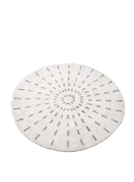 Large round bath mat in cotton with silicone anti-slip layer from HK Living. colour: Black/white dimensions: 120x120x1cm product length/depth (cm): 120 product width (cm): 120 product height (cm): 1 product diameter (cm): 120 product weight (gr): 1400 material: Cotton, silicone anti-slip layer characteristic: Hand was only