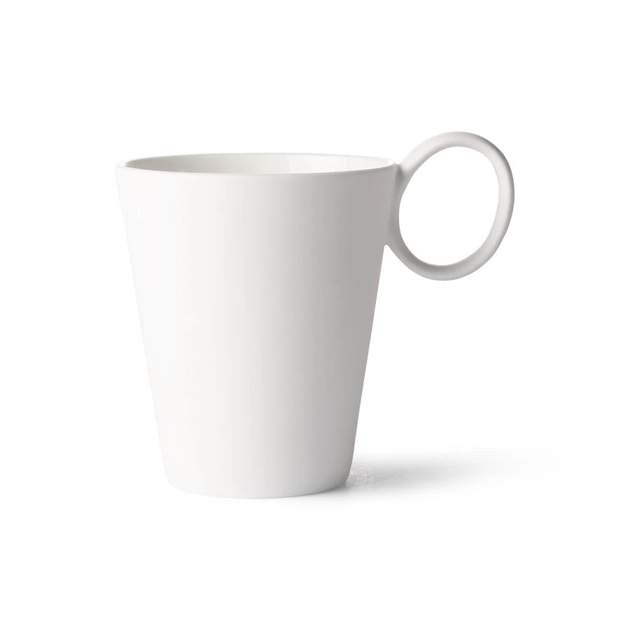 Luxurious bone china mug from the athena ceramics series. Bone china is a type of ceramic that uses among other things bone ash and clay as basic material. It seems fragile, while it is the strongest porcelain. Athena is a new range of ceramics to fall in love with. Its white, its clean, its serene, a perfect set of ceramics for an exclusive dinner party at home. This new collection takes you back to the classic Greek era. Geometric shapes interspersed with bone china and picture-perfect porcelain. The outside of this mug is matt glazed.